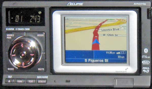 | Eclipse will be offering a car audio unit that integrates a removable Tom Tom GPS navigator. It fits into a double-DIN slot, so it looks better integrated into the car. Available in May for under $1,000. |
