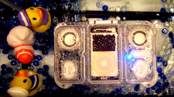 | Want to listen to your iPod in the bathtub or swimming pool? This $149 case from Ego does the trick. |