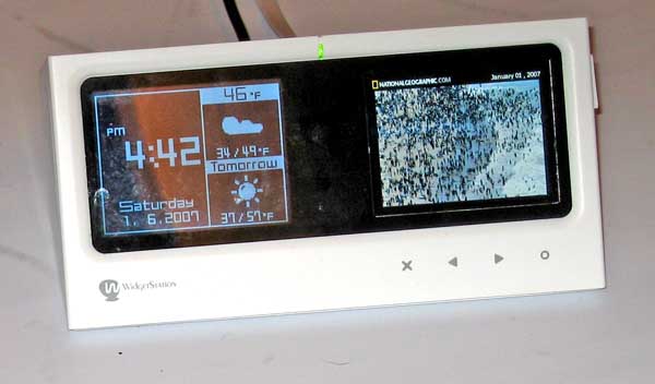 | Emtrace WidgetStation is an Internet-connected clock that also displays information from widgets such as weather, news, or even photos from your Flickr account. Price and availability are TBD based on an evolving go-to-market model. |