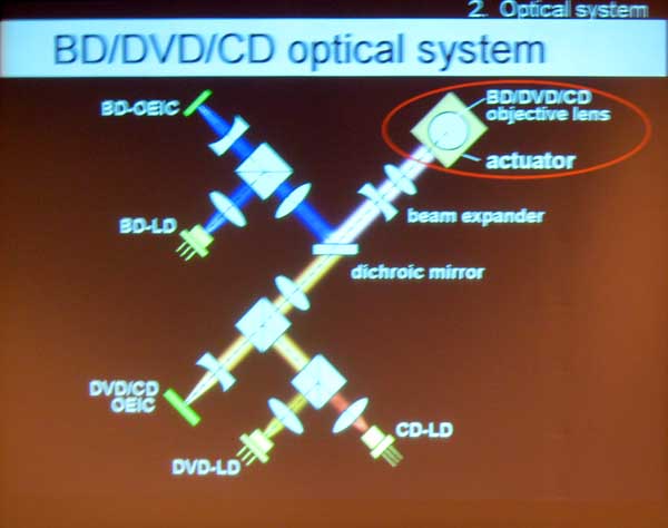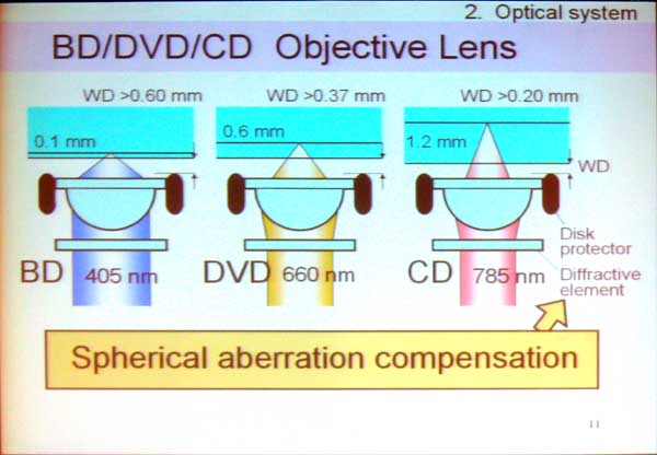 | Fumio Issiki, Hitachi, explained how to make a low error rate optical pickup unit that works for Blu-ray, DVD and CD. To handle HD DVD would require another lens (as LG did) using current thinking. |