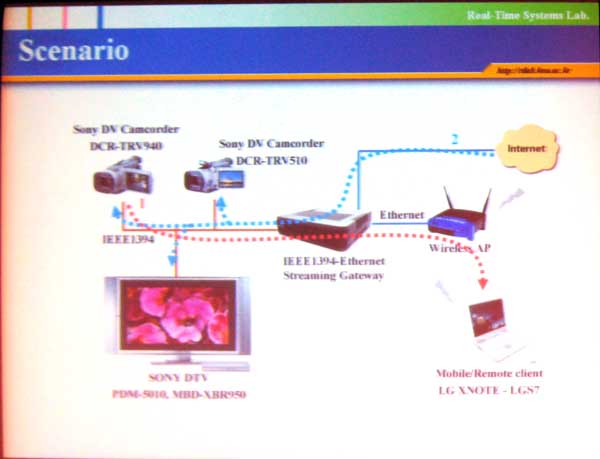 | Hyo Moon Jeung, et al, Kyungpook Univ, Korea, propose a device that translates IEEE 1394 streams to Ethernet translation for easier interfacing of devices like camcorders to DLNA devices. |