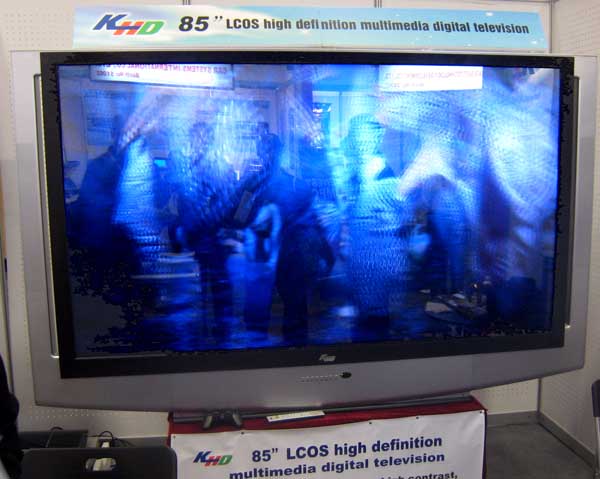 | No, this is not an 85" SXRD TV from Sony, even though it is styled similarly. It is, however an 85" LCOS TV from KHD. Uses a 200W UHP lamp and is 28" deep. Vendor thinks retail will be between $12 - 18K. |