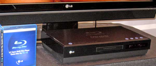 | Probably the single most important product introduction at CES. While we knew it was being worked on, seeing LG's finished Blu-ray/HD-DVD combo player in person finally changes the stalemate between the two formats. LG calls it "Super Multi Blue". Now the single-format players begin to look a little narrow, and the consumer doesn't have to care that all the studios aren't behind a single format (Universal supports HD-DVD, while all the others support Blu-ray or both). The player is model BH100, and will retail for $1,199, Q1 of 2007. It is 90% there - the interactive iHD (for HD-DVD) is not fully supported, while BD-J (Blu-ray) is. However, their GGW-H10N combo drive for the PC does support both interactive languages. The PC drive can write Blu-ray, but does not appear to write HD-DVD. While LG has not talked to other manufacturers yet, it would not be surprising to see more combo drives in a year from others. The iHD omission should also be solved in time. |