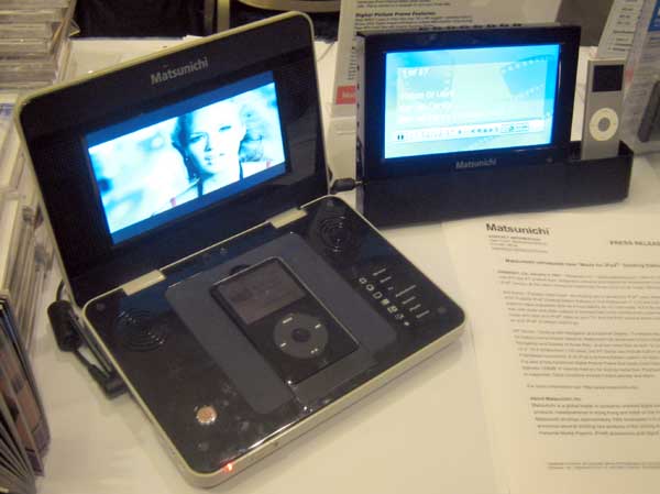 | Here is another of the many iPod accessories at CES - Matsunichi has a pair of docking stations for your video iPod. See the video on a bigger screen, including on your TV. Both models available in March. $130 for the one on the left, and $250 for the one on the right. |