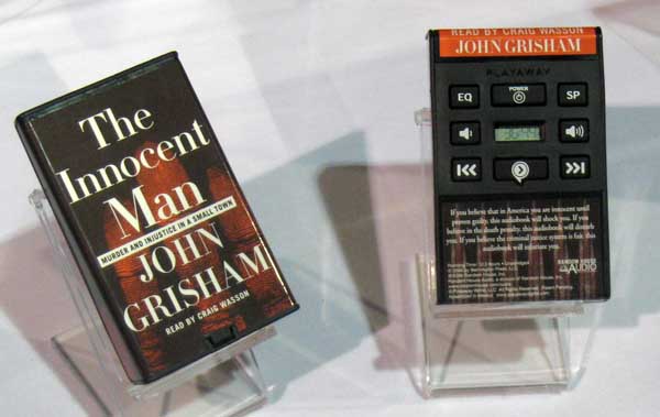 | Cute little audio books that are based on MP3 players. You buy them at book stores like Borders for about the same price as audio book CDs. Comes with ear buds, too. |