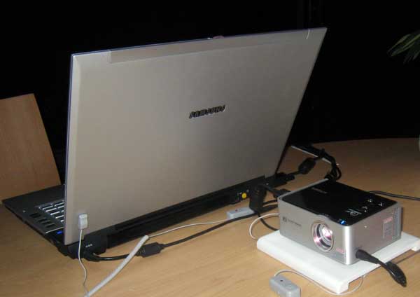 | The Samsung Pocket Imager is a 50 lumen LED powered pocket projector that they claim can work on a 100" screen (a 40" screen was shown in a dark room and it was acceptable). The most likely use is for small business meetings. SVGA resolution for about $700 this February. |