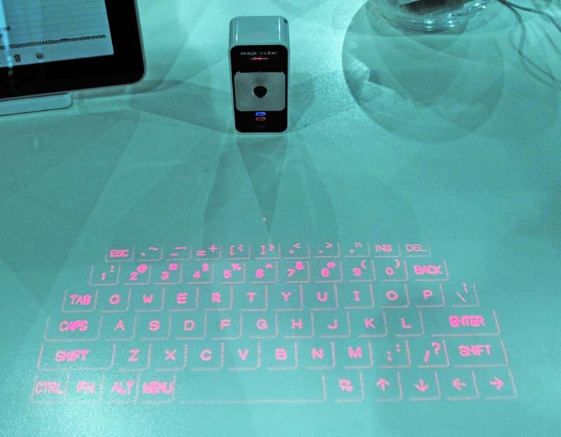 projects a keyboard onto the table. You type on