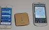 The small Aura sensor is shown between the two phones. Tap the Aura